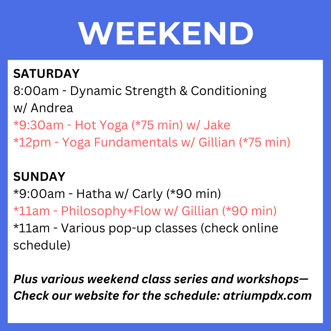 Atrium’s roster of weekly and monthly classes empowers you to bring your mental, physical, and spiritual practices together under one roof. Memberships and punchcards are the most cost-efficient way to deepen your movement practice through regular attendance of several different movement modalities, although sliding-scale drop-ins are available to discover your new favorite thing.