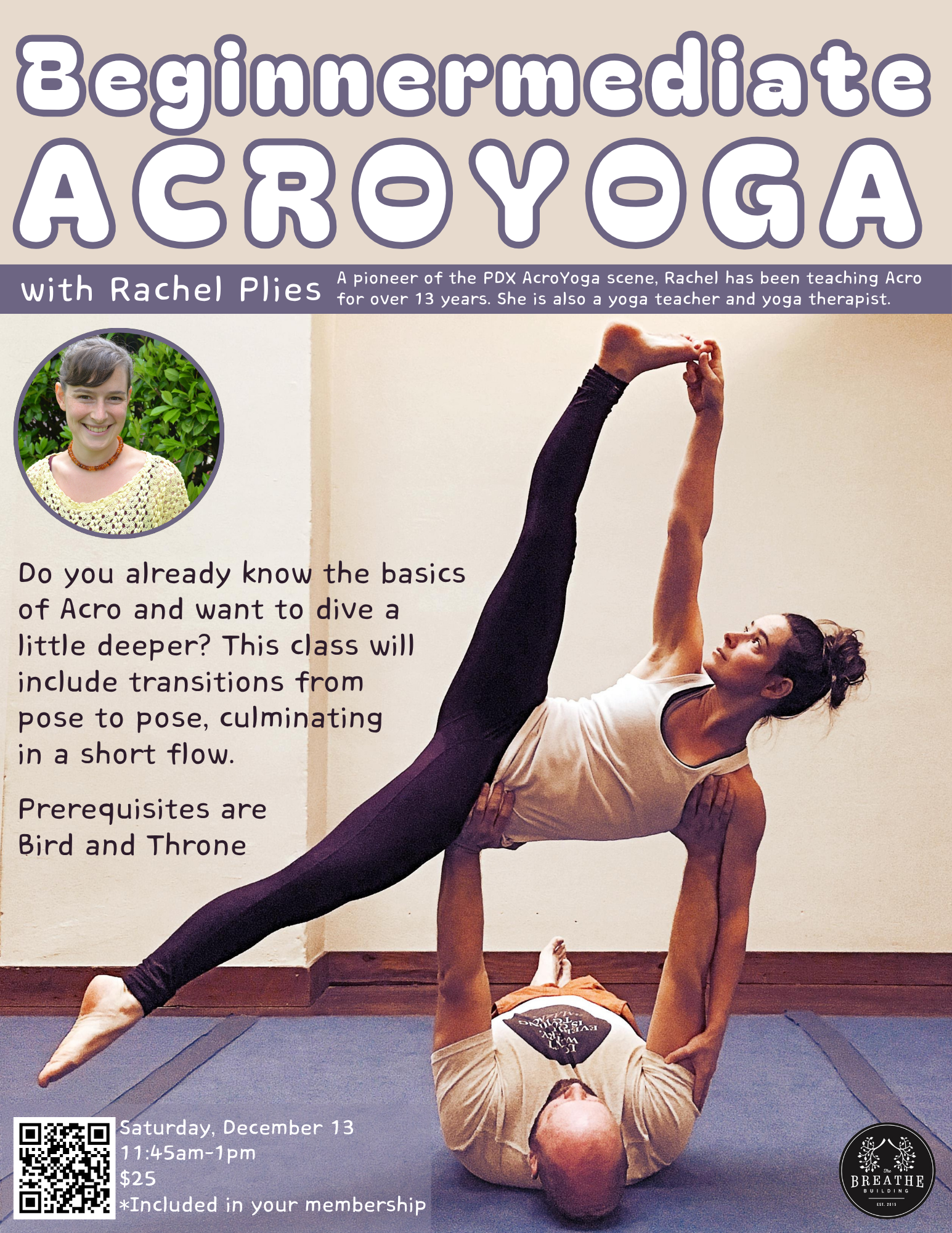 Back to All Events Beginnermediate Acro Yoga Saturday, December 13, 2025 11:45 AM 1:00 PM Google Calendar ICS Register