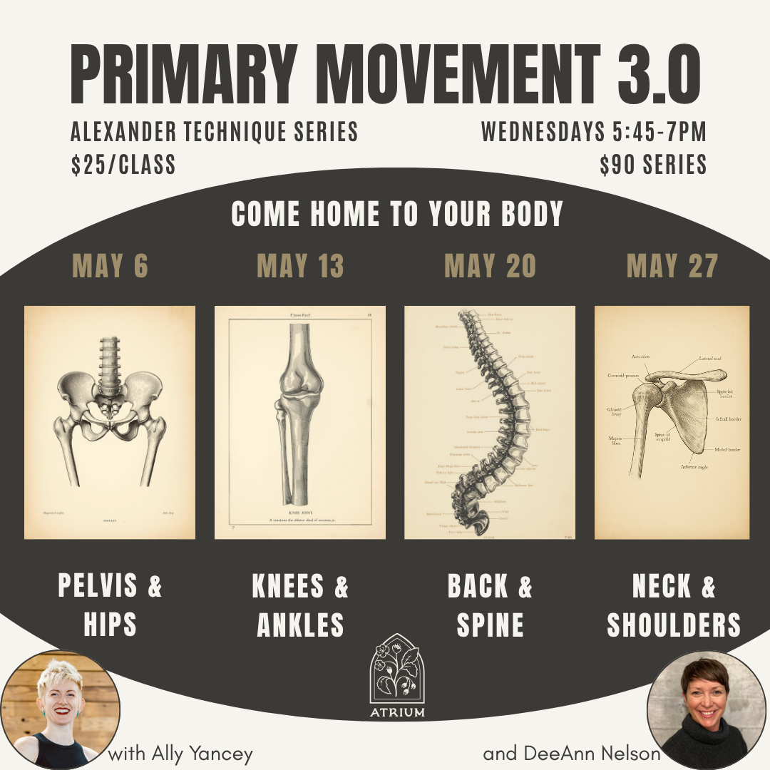 Come explore the incredible human body using The Alexander Technique. To register only for 5/6 please email connect@atriumpdx.com